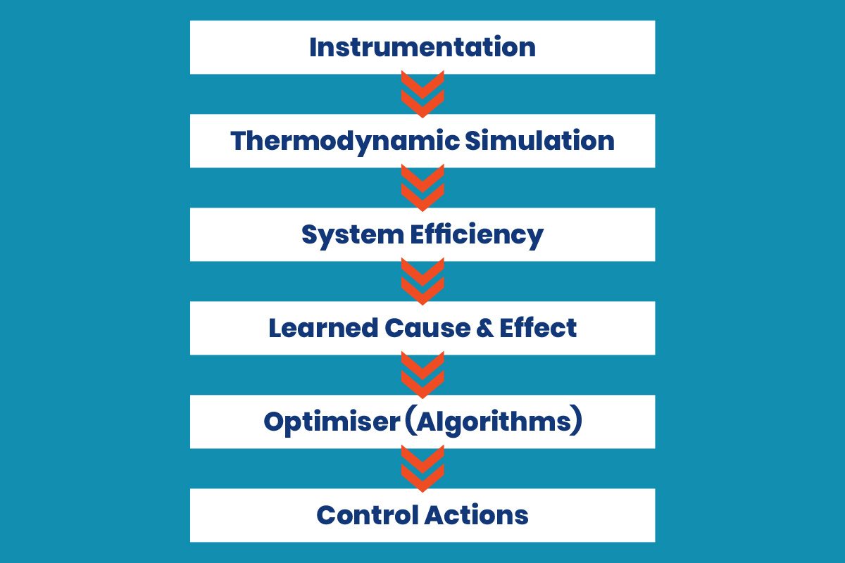 Optimisation algorithms are then applied to maximise whole-of-system efficiency by modifying operator control points subject to constraints.